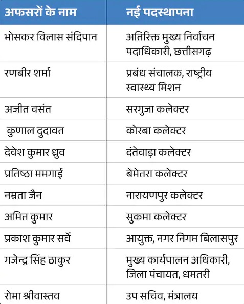 मिली जानकारी के मुताबिक छत्तीसगढ़ (Chhattisgarh) शासन ने प्रशासनिक स्तर पर बड़ा फेरबदल किया है। बताया जा रहा है कि सरकार ने 11 IAS अफसरों का तबादला हुआ है।