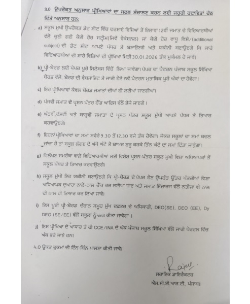मिली जानकारी के मुताबिक सत्र 2025-26 के दौरान पंजाब (Punjab) के सरकारी स्कूलों में पढ़ रहे कक्षा 5वीं 8वीं, 10वीं और 12वीं के छात्रों के लिए प्री-बोर्ड/टर्म परीक्षा-2 की डेटशीट जारी कर दी गई है। इसको लेकर नोटिफिकेशन भी जारी कर दिया गया है।