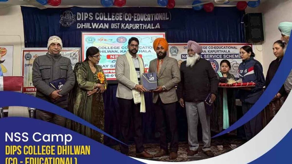 डेली संवाद, जालंधर। DIPS News: डिप्स कॉलेज, ढिलवां में आयोजित एनएसएस कैंप के दूसरे दिन विद्यार्थियों ने साक्षरता जागरूकता कार्यक्रम के अंतर्गत समाज को शिक्षित व जागरूक करने का संकल्प लिया। विद्यार्थियों ने आवश्यक जीवन कौशल सीखे और नशामुक्त पंजाब का संदेश जन-जन तक पहुँचाया।