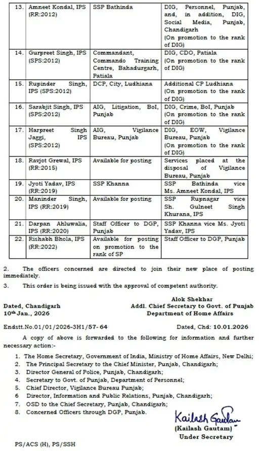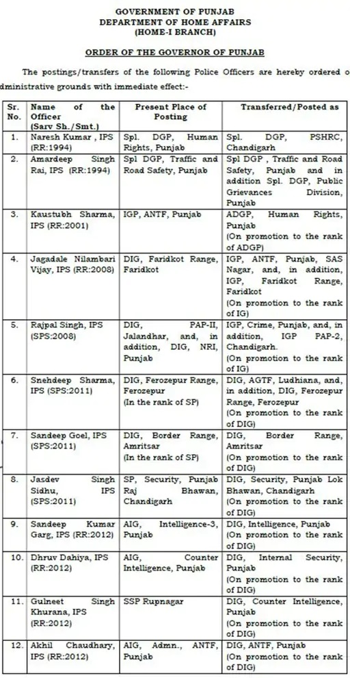 Punjab Transfer News: पंजाब में IPS अफसरों का तबादला, DCP भी बदले गए, पढ़े ट्रांसफर लिस्ट