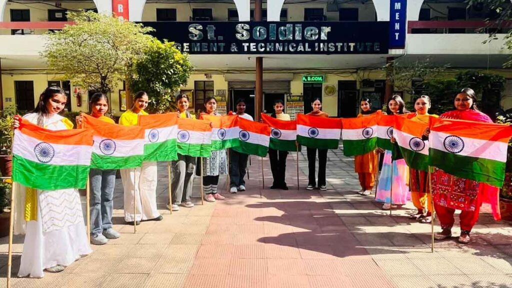 डेली संवाद, जालंधर। St Soldier News: सेंट सोल्जर ग्रुप ऑफ इंस्टीट्यूशंस की विभिन्न शाखाओं द्वारा 77वां गणतंत्र दिवस धूमधाम से मनाया गया। समारोह का शुभारंभ तिरंगा ध्वजारोहण के साथ हुआ। छात्रों और स्टाफ सदस्यों ने राष्ट्रगान गाया और तिरंगे ध्वज को सलामी दी।