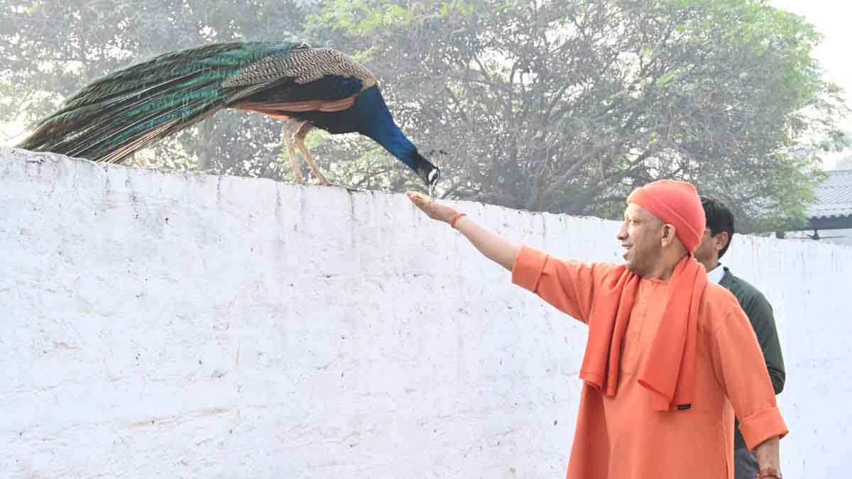 गोशाला में सीएम योगी ने गोवंशों का नाम लेकर पुकारा। पास आने पर उन्हें खूब दुलारा और अपने हाथों से रोटी-गुड़ खिलाया। मंदिर की गोशाला में मुख्यमंत्री के पहुंचने पर एक मोर भी उनके पास आ जाता है। मुख्यमंत्री इस मोर को ‘पुंज’ नाम से पुकारते हैं। उन्होंने मोर पर भी अपना स्नेह लुटाया। अपने हाथों से रोटी के छोटे टुकड़े कर मोर को खिलाए।