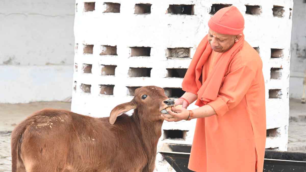 गोशाला में सीएम योगी ने की गोसेवा