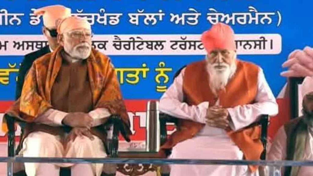 डेली संवाद, जालंधर। PM Narendra Modi Punjab Jalandhar Visit: प्रधानमंत्री नरेंद्र मोदी शुक्रवार को जालंधर स्थित रविदासिया समाज के सबसे बड़े और पवित्र धार्मिक स्थल डेरा सचखंड बल्लां पहुंचे। यहां उन्होंने डेरा प्रमुख संत निरंजन दास के चरण छूकर आशीर्वाद लिया और संगत को संबोधित किया।