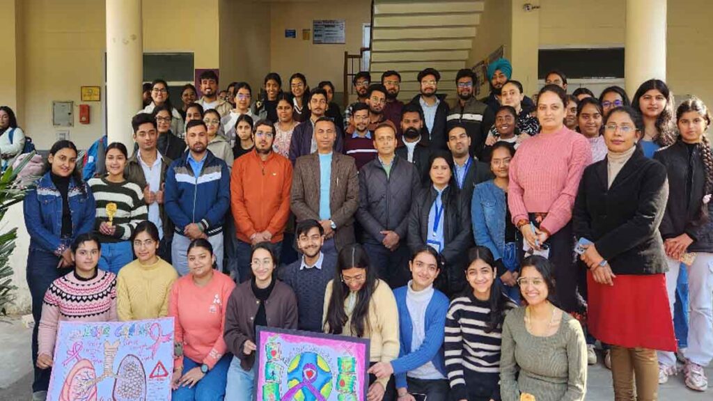 डेली संवाद, जालंधर। Jalandhar News: दयान्नंद आर्युवेदिक कॉलेज (Dayanand Ayurvedic College) के प्रिंसीपल प्रो. डॉ. चंदर शेखर शर्मा के दिशा निर्देशों अनुसार हमसफर यूथ क्लब, हमसफर रैड रीबन यूथ क्लब व माई भारत जालंधर के सहयोग से काॅलेज में कैंसर जागरूकता अभियान के दौरान पेटिंग व स्लोगन प्रतियोगिताएं में कालेज के 135 के करीब विद्यार्थियों ने भाग लिया।