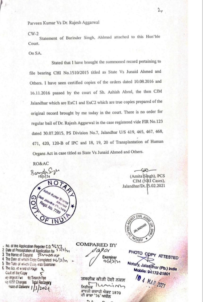 गौरतलब है कि किडनी कांड मामले में भी यह एप्लीकेशन लग चुकी है कि अगर डॉक्टर राजेश अग्रवाल के पास किसी भी अदालत में मंजूर हुई रेगुलर बेल है तो उसे दिखाया जाये। कोर्ट के अहलमद ने भी लिखित में कह दिया था कि जिस दिन की जमानत की बात डॉ राजेश अग्रवाल करते हैं उस दिन कोई बेल नहीं दी गई।