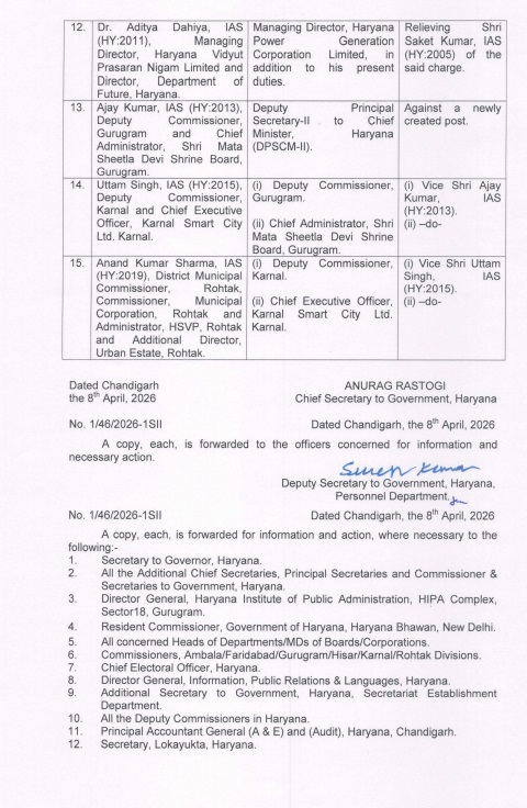 डेली संवाद, हरियाणा। Transfer News: तबादलों का दौर लगातार जारी है। इसी बीच बड़ी खबर सामने आ रही है। खबर है कि सरकार ने एक बार फिर बड़े स्तर पर प्रशासनिक फेरबदल किया है।