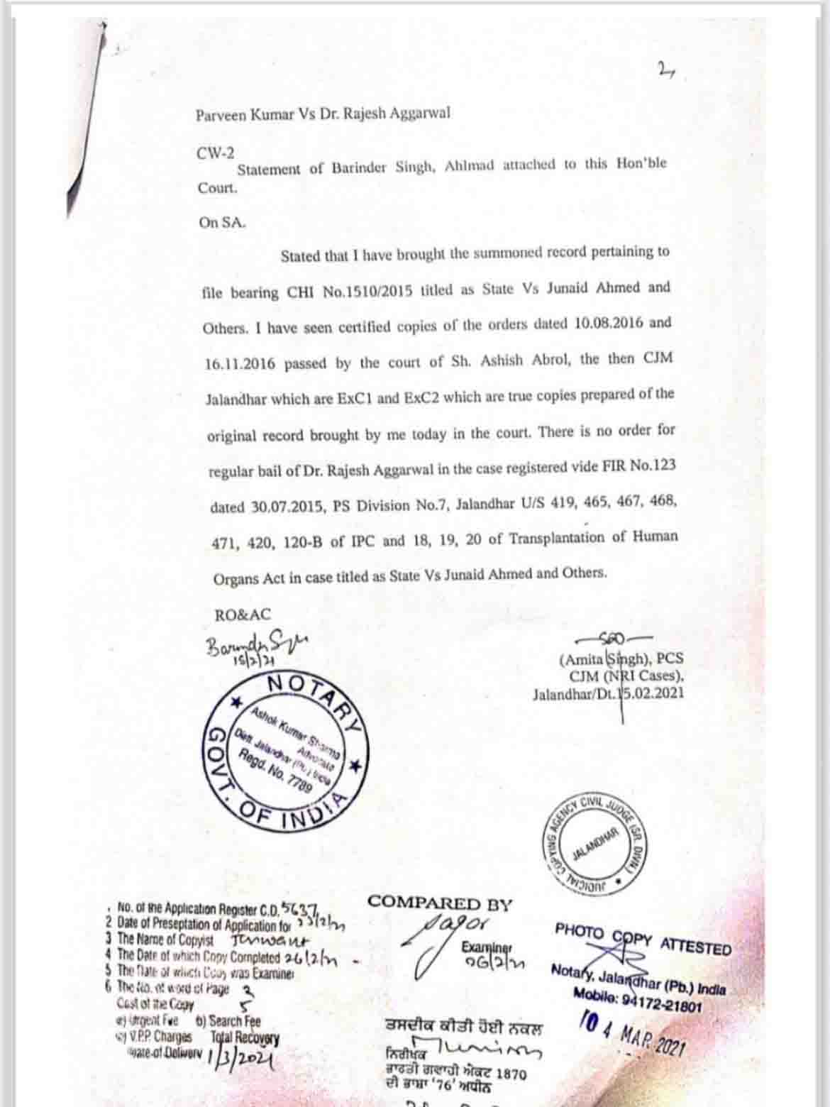 पंजाब सरकार (Punjab Govt) के DRME विभाग के सुपरिंटेंडेंट सौदागर चंद ने लिखित बयान भी दिया था कि कौन- कौन दोषी है और जब भी जरुरत होगी वो कोर्ट आकर सब कुछ बताने को तैयार है। लेकिन सिस्टम की लापरवाही देखिए आज 11 साल बीत जाने के बाद भी वो व्यक्ति गवाही के लिए नहीं बुलाया गया। आरोपी डॉ राजेश अग्रवाल किस कागज या आर्डर के आधार पर ‘रेगुलर बेल’ का ढिंढोरा पीट रहा उसके बारे सरकारी वकील भी जानना चाहता है।