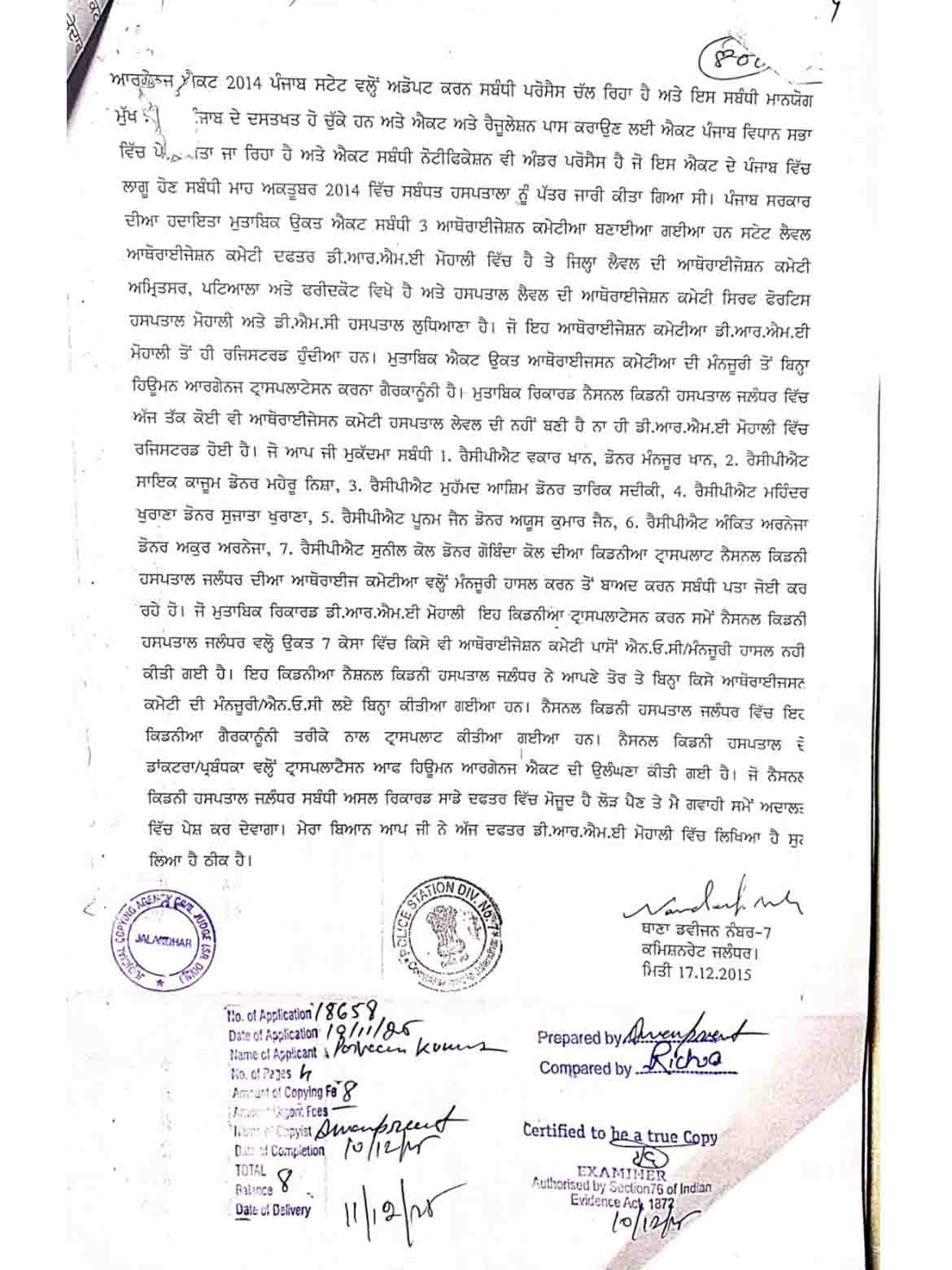 अब इस केस की सुनवाई 1 मई को तय की गई है। इसमें पब्लिक प्रॉसिक्यूशन ने अर्जी दे रखी है कि गवाही फिर से शुरू करवाई जाये। 2015 में किडनी रैकेट के खुलने पर डॉक्टर राजेश अग्रवाल, संजय मित्तल, सुमन मित्तल समेत कई अन्य अन्य डॉक्टर/ प्रबंधक पर अवैध रूप से किडनी ट्रांसप्लांट की कई धाराओं के तहत केस दर्ज हुआ था। जांच में पता चला था कि बिना मंजूरी लोगों की किडनियां निकालीं गईं और ट्रांसप्लांट की गईं।