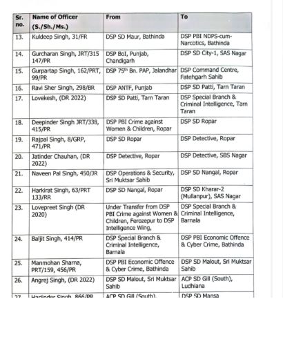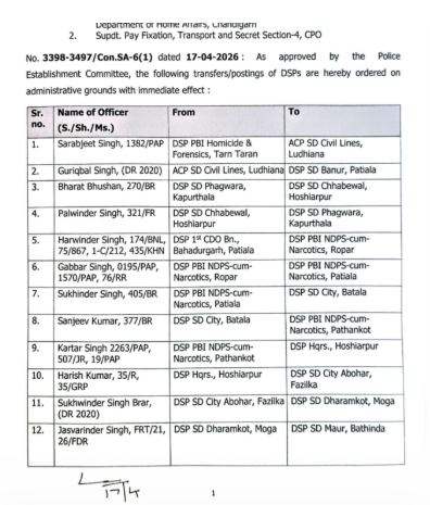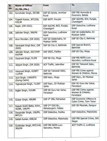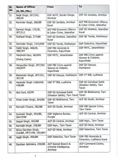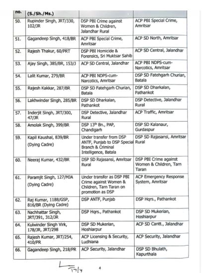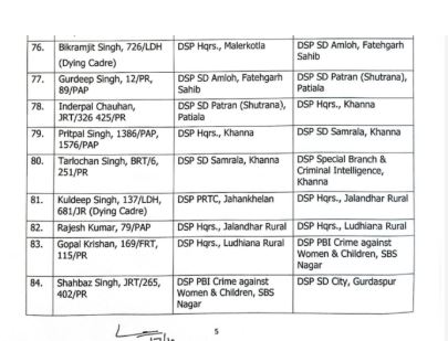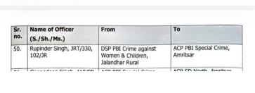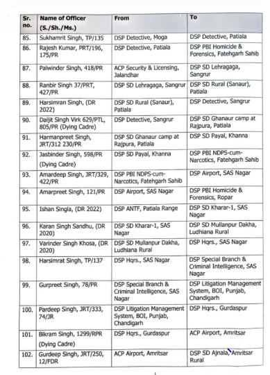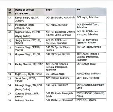 जानकारी के मुताबिक, पंजाब (Punjab) के जालंधर में एसीपी सेंट्रल और मॉडल टाउन जैसे अहम पदों पर तैनात अधिकारियों को भी बदला गया है। इसके अलावा अन्य जिलों में भी डीएसपी स्तर के अधिकारियों की जिम्मेदारियों में बदलाव किया गया है। इस बड़े प्रशासनिक कदम को पुलिस व्यवस्था को और अधिक प्रभावी बनाने के प्रयास के रूप में देखा जा रहा है।
