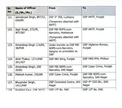 डेली संवाद, चंडीगढ़। Punjab Police Transfers Posting News: पंजाब में बड़ा प्रशासनिक फेरबदल किया गया है। पंजाब पुलिस में बड़े स्तर पर तबादले किए गए हैं। जानकारी के अनुसार, पंजाब पुलिस (Punjab Police) में कुल 129 डीएसपी रैंक के अधिकारियों का ट्रांसफर किया गया है। इस फेरबदल में जालंधर, लुधियाना समेत कई प्रमुख शहरों के अधिकारी शामिल हैं।